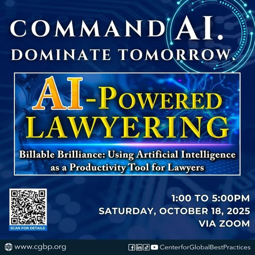 The Center for Global Best Practices invites you to an insightful seminar designed to equip legal professionals with the knowledge and strategies to navigate the age of AI.