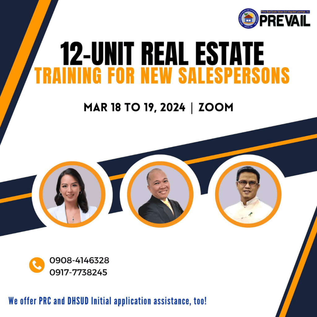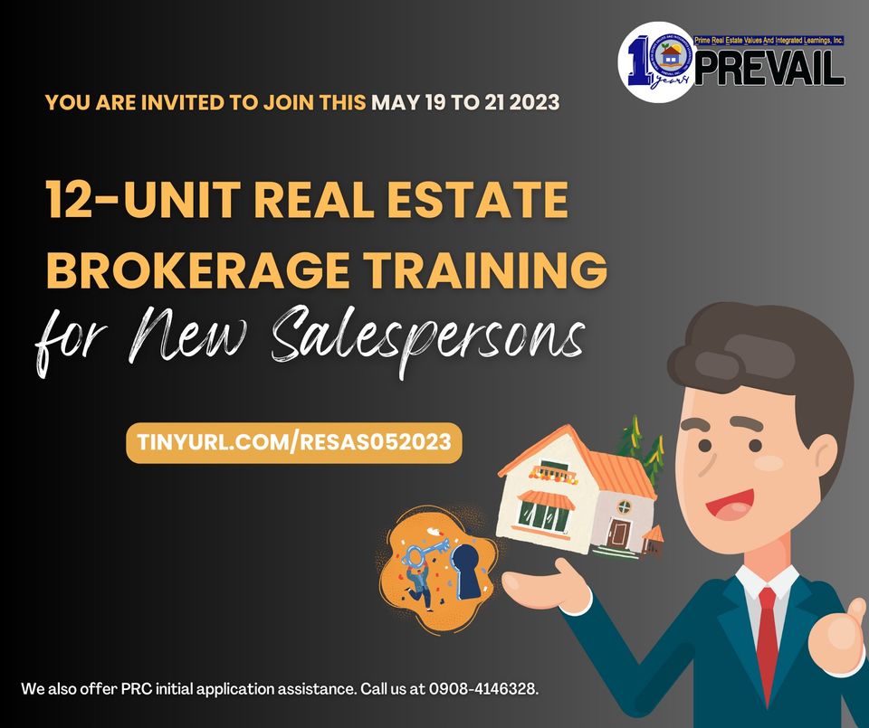 This is the Entry-level Seminar for aspiring Real Estate Salespersons who desire to be accredited under Rep. Act No. 9646, powered by Prime Real Estate Values and Integrated Learnings, Inc., or simply PREVAIL. I will present the following topics on March 21, 2023: (1) Code of Ethics and Responsibilities of RESPs; and (2) Documentation & Registration of Real Estate Transactions. Follow the TinyURL link to register or send a message to PREVAIL.