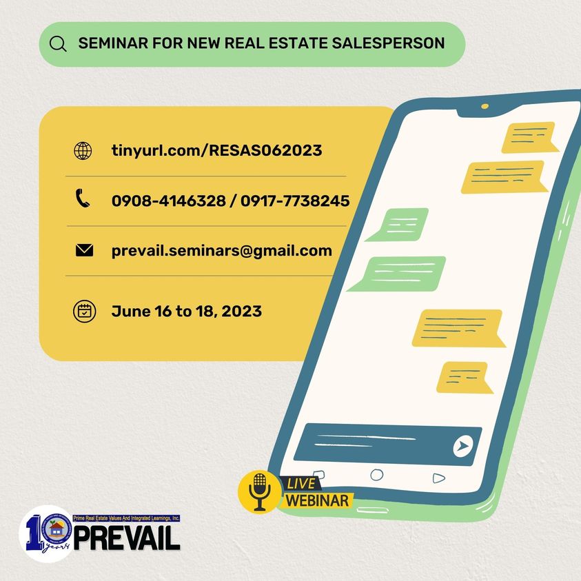 This is the Entry-level Seminar for aspiring Real Estate Salespersons who desire to be accredited under Rep. Act No. 9646, brought to you by Prime Real Estate Values and Integrated Learnings, Inc. (PREVAIL). I will present the following topics on June 17, 2023: (1) Code of Ethics and Responsibilities of RESPs; and (2) Documentation & Registration of Real Estate Transactions. Follow the TinyURL link to register or send a message to PREVAIL.