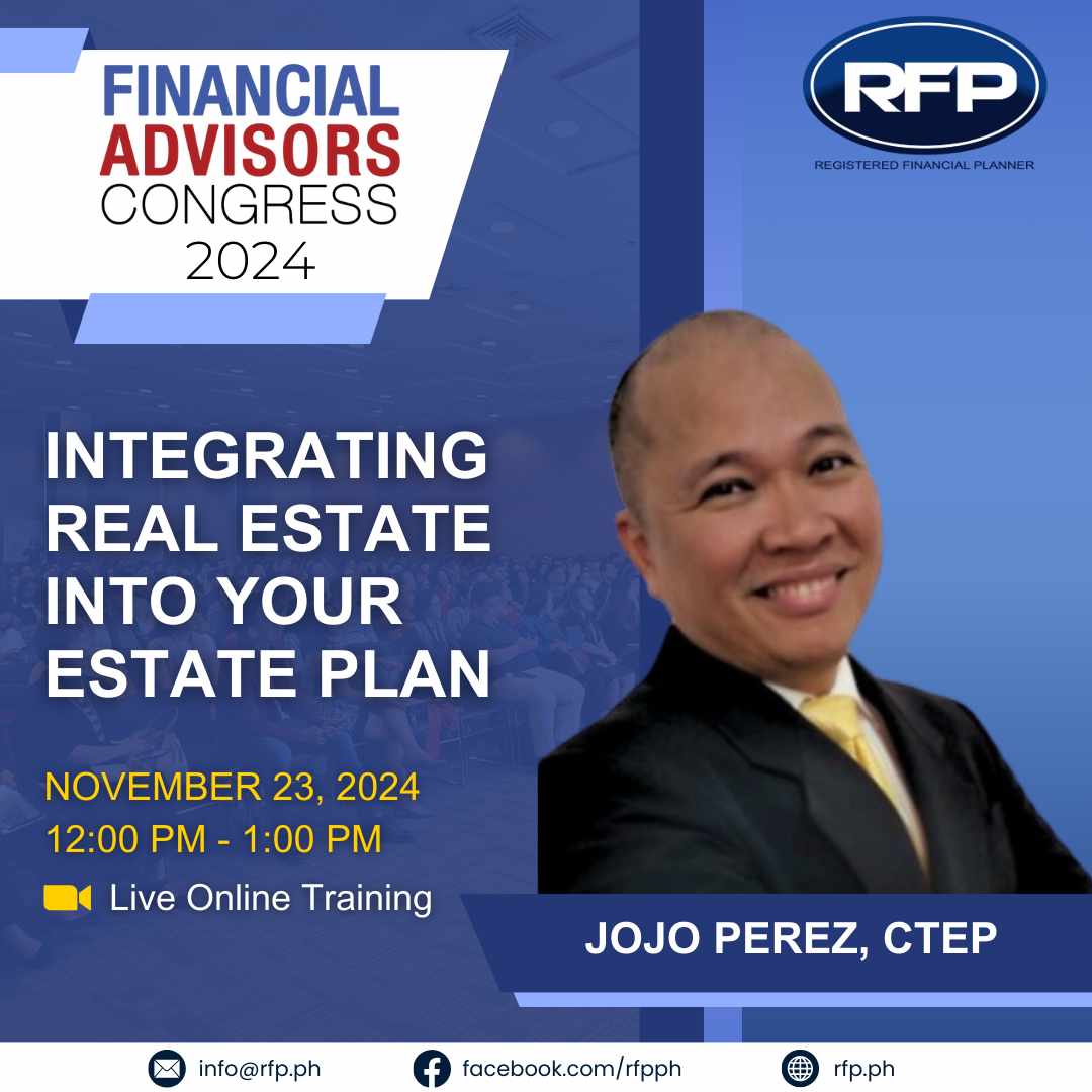 The Financial Advisors Congress is an investment conference organized by RFP Philippines. It is a learning conference for professionals who offer financial advice and sell financial products. As a contribution to this event, I will be presenting the topic Beyond Inheritance: Crafting a Lasting Legacy of Values and Wisdom on November 24, 2023. This one-hour presentation introduces the concept of legacy planning to the attendees, and why it is important to consider this in presenting financial solutions for prospective and existing clients. For inquiries on how to join, kindly text, call, or email Ms. Mikah Gaviola (mikahgaviola888@gmail.com) at +639817164806.